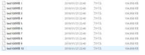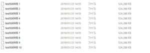 結果としてはこちらも最大速度60MB/秒出て、平均すると55MB/秒前後の転送速度になりました。100MB×10データの転送時間は19秒でした。小さいファイルの複数データの書き込みは十分な速度でした。これであれば実用十分な範囲ですね。